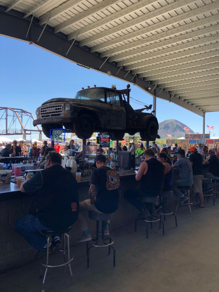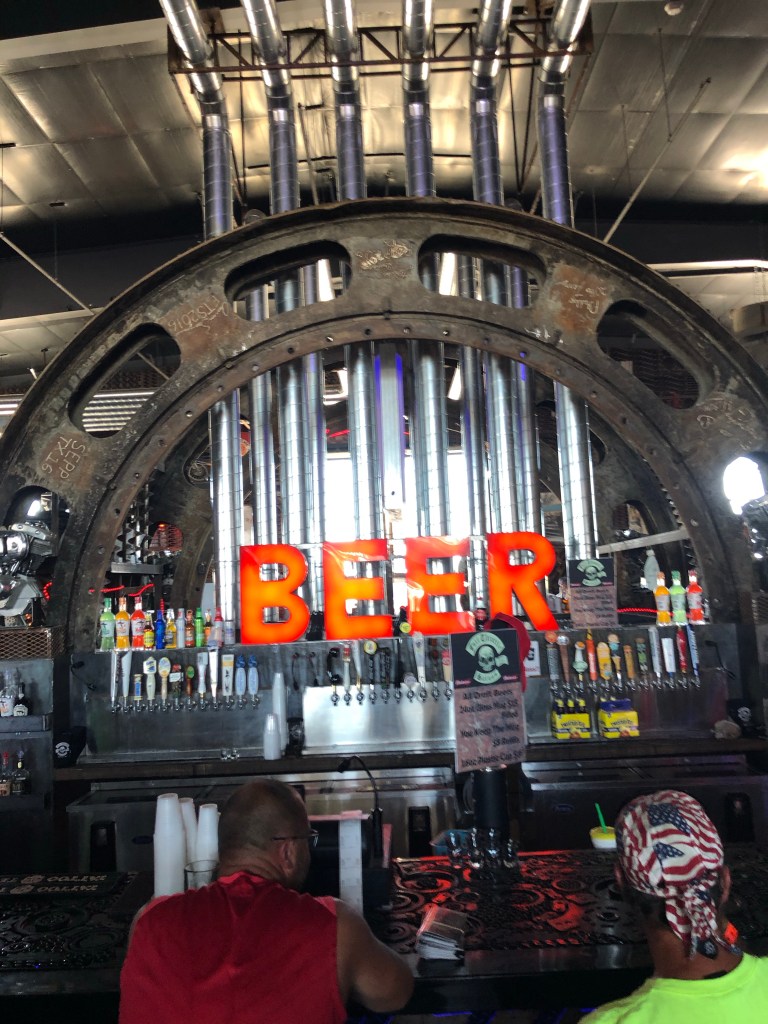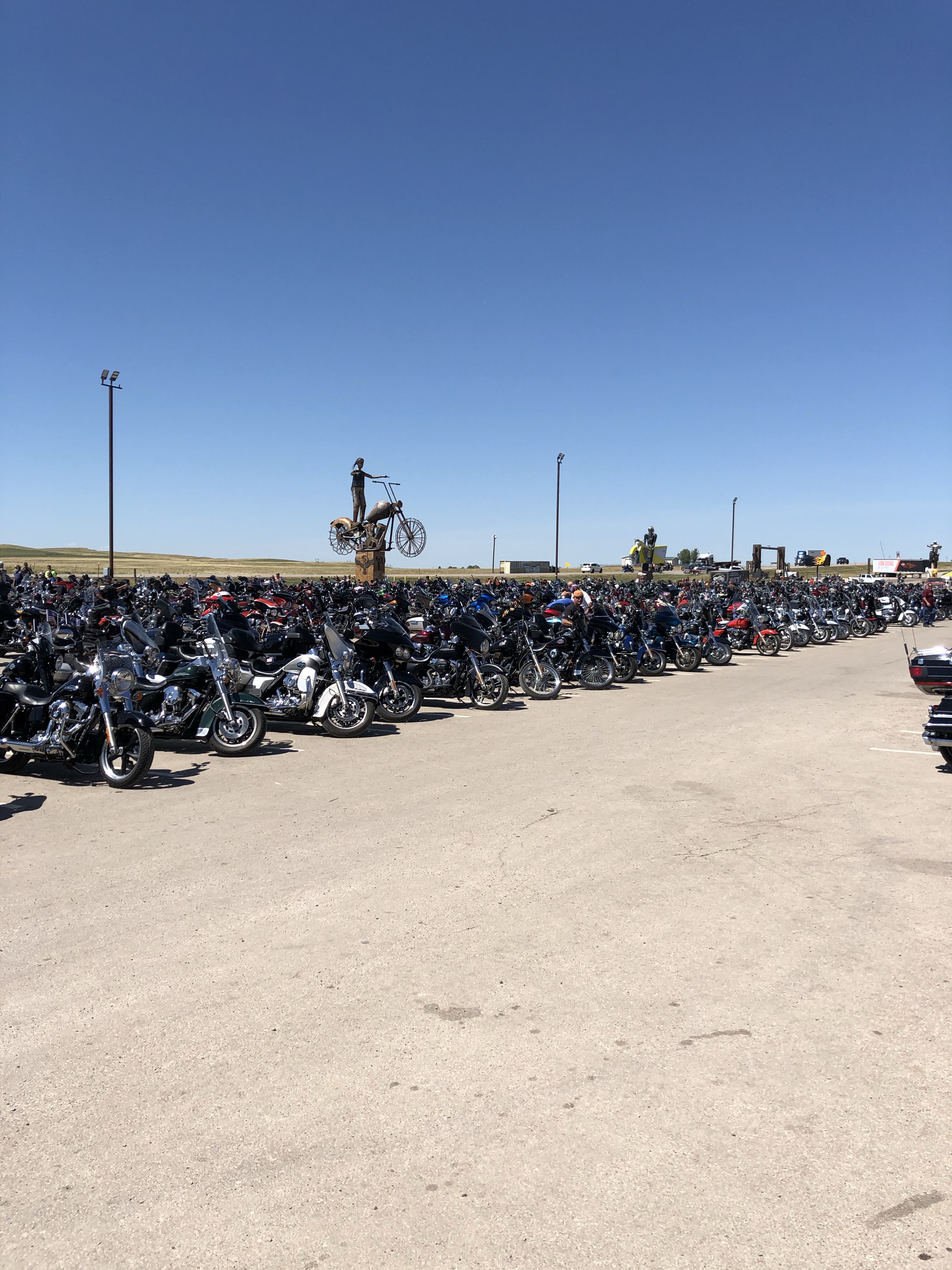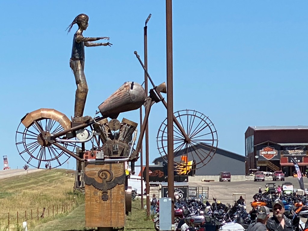 The full throttle was hooping today. We walked in to a ZZ Top band called zz3. They sounded great. Even dedicated a song to the Sioux Falls Police Department for arresting the lead guitar player for DWI last night. Sense of humor I guess. I believe the song they sang was, “ arrested for driving while blind”. Go figure. A lot of metal art out at the FTS and they keep adding every year. Also had a motorcycle trapeze act on the old bridge. I’ll add some photos and a video or two.