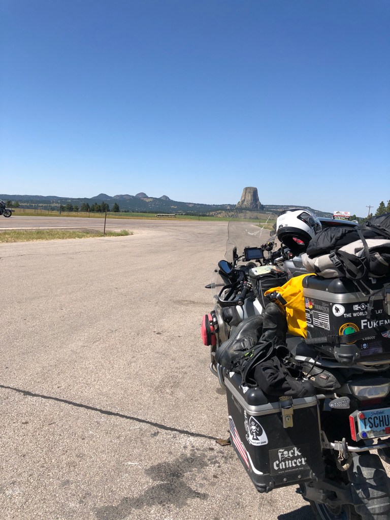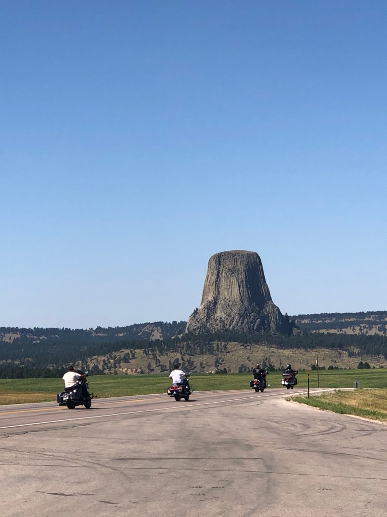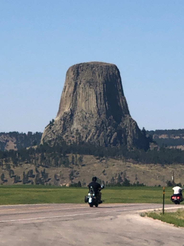 One of the must see sights when in the eastern Wyoming area is Devil’s Tower. The tower is a massive geological uprising coming out of the prairie. The tower is considered to be the largest columnar jointing made of phonolite porphyry. If you get close to the tower you can see it is made of numerous columns. The columns link together in hexagonal and pentagonal columns. The tower is part of the National Park Service. Devil’s Tower is the considered to be the first national monument. The National Park Service was created 10 years after the Tower was made a protected site. The National Park Service has set up 3 different webcams showing the entrance, an ampitheater view and a view of a prairie dog town at the nps.gov website. Here are some pictures from a overlook on the roadway.
