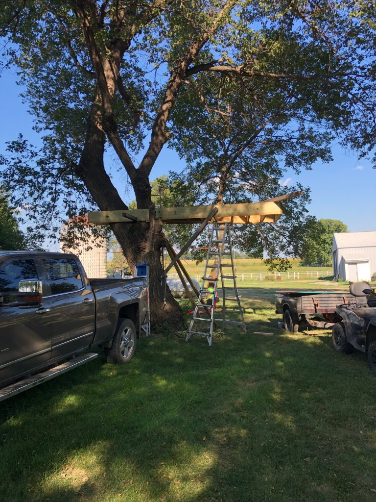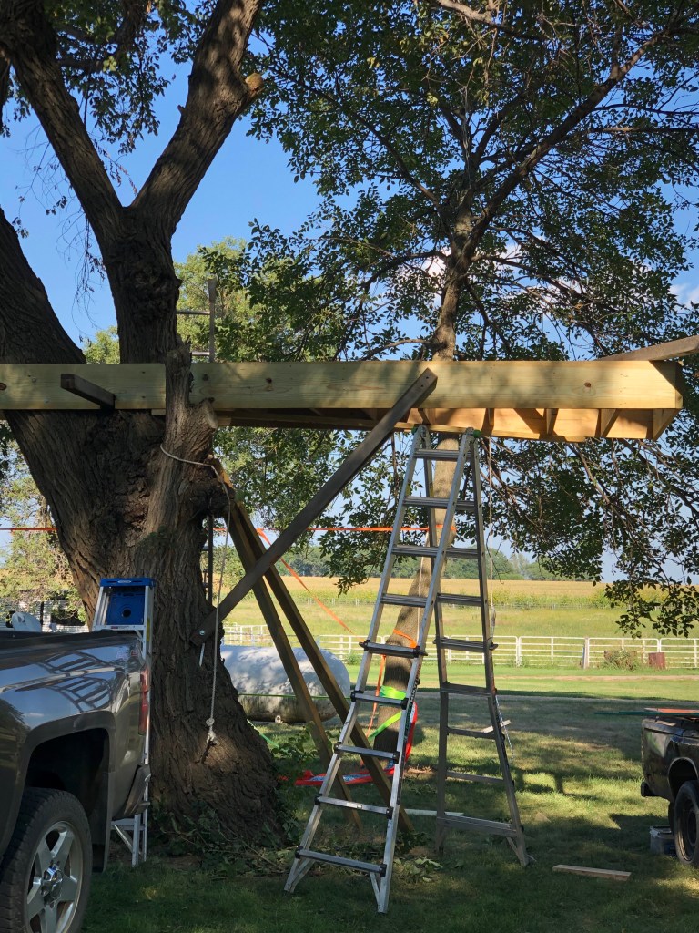 It was a warm day for building a tree fort, but it will be so cool when it is finished. It is right in the front yard and kind of reminds me of the house on the rock in Wisconsin. Not quite on the same scale, but has a free standing effect. Jason Callaway, who the leader of Callaway Construction 605, is the architect of this masterpiece for his daughters to play on. I am looking forward to seeing what the finished result will be!