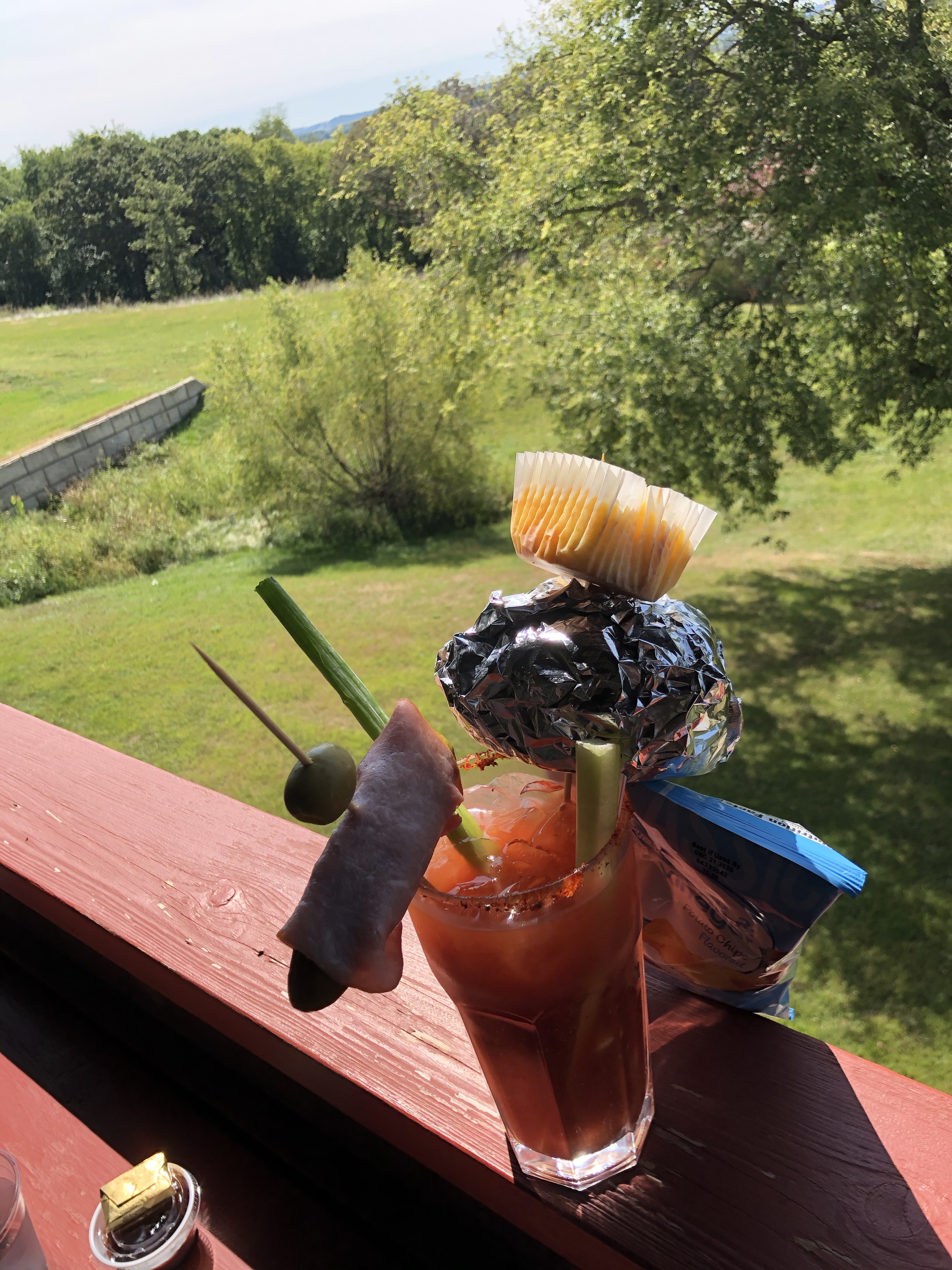 Went to valiant vineyards in Vermillion today for lunch. This Bloody Mary is what we had. Very filling lunch. The Bloody Mary tasted good. The pulled pork sandwich on the top was awesome. All the veggies were crisp and fresh. They used their own vodka they make and soaked peppers in it for a couple weeks. Great Sunday outing for us. Will have to go again.