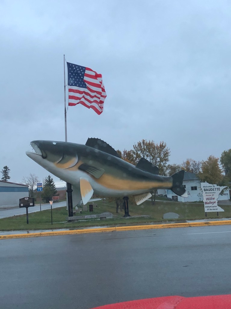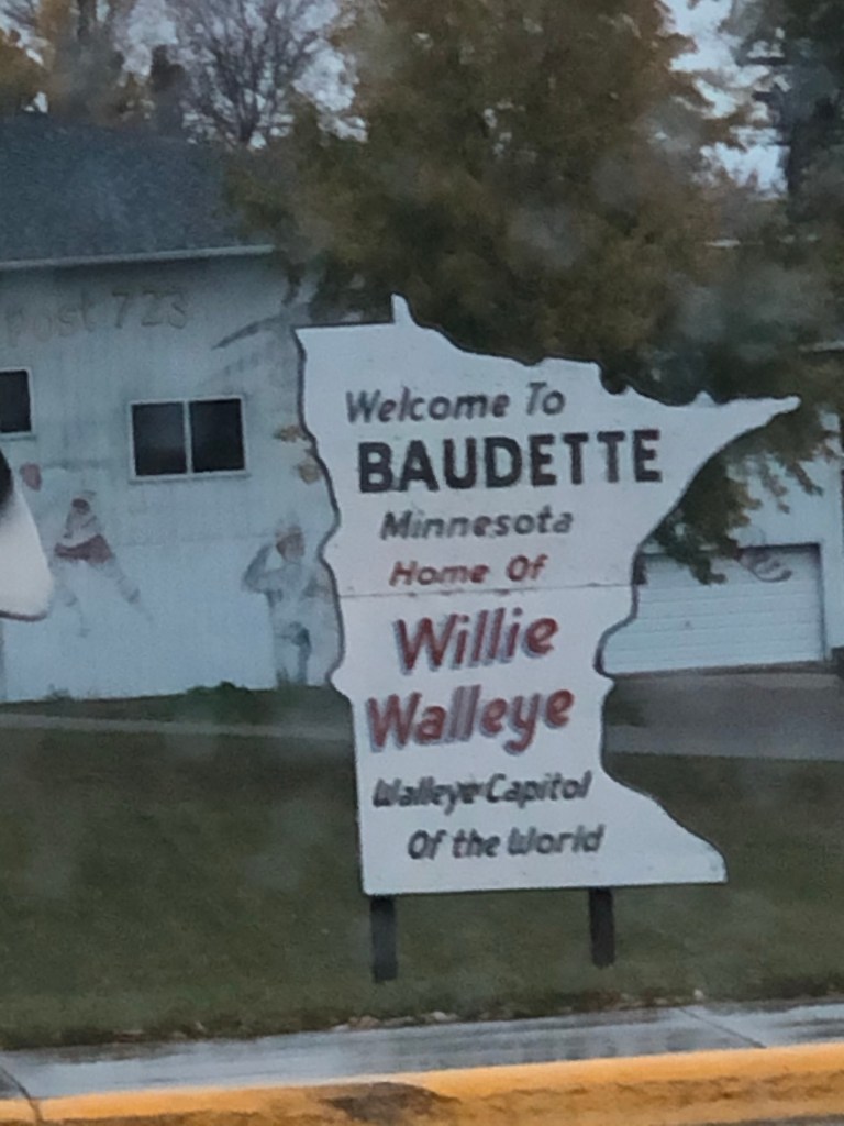 Willie the walleye in BaUdEtTe, Minnesota. I always like to see the cool parks and advertisements they have in small town’s. This is representative of what I plan on catching this week up here in the Lake of theWoods. Mine might be a little smaller, but it will be described as something close to this size. Fun with fish. ..