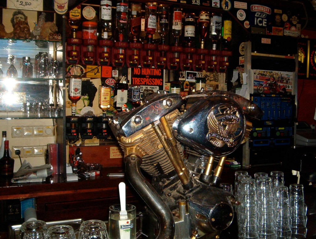 Here is a picture of the beer tap at The Other Place in Amsterdam. The beer was cold and interestingly enough it was very like Heineken! Very interesting use of motorcycle parts and memorabilia scattered throughout the bar. One of many places we had stopped at in our tour of the bar district.