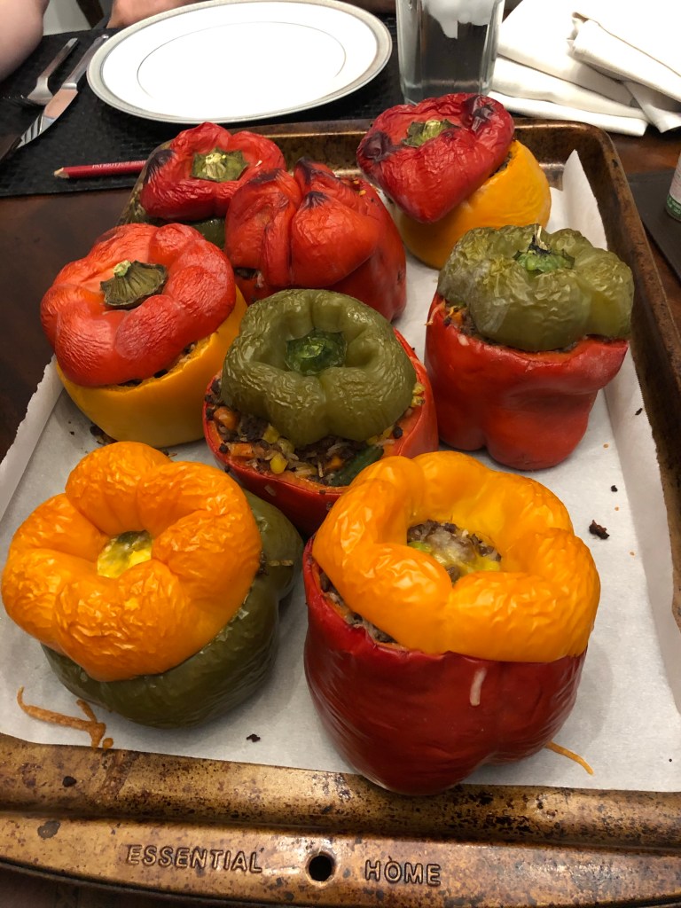 I am sooooo lucky to have a wife who is such a colorful and creative cook. Tonight’s specialty was stuffed pepper cups. So awesome. Dessert was apple crisp. life is great!!!