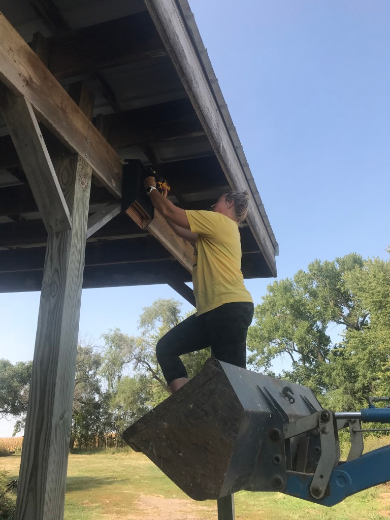 So we had some bats in the barn. I wanted them to go elsewhere on the property. I posted the mylar and light remediation on the BLOG before. This is the optional housing we provided for them to move into if they so wished. I am so glad for the help of my favorite daughter with the mounting of the houses. It was kind of cold when we started the remediation, so I think they might have migrated already. We will have to see what next spring holds for the move in for them. I hope they like the new houses. There should be plenty of bugs for them to eat in the back yard…