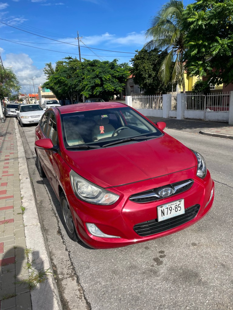 Here is a slightly faded 2013 Hyundai Accent which will be transportation for the winter. We really only need a small car for the island. It is fairly fuel efficient and beats walking. Ac blows cold!
