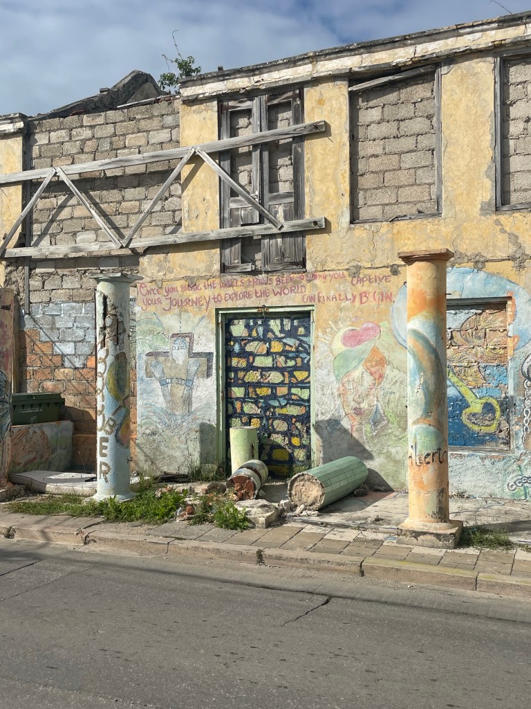 There is a lot of street art on abandoned buildings here in Curaçao. Some of it makes you think about things a bit. This one is on Petermai Street.