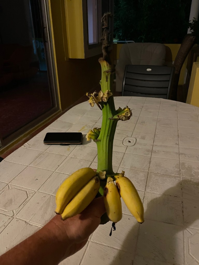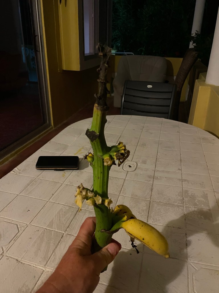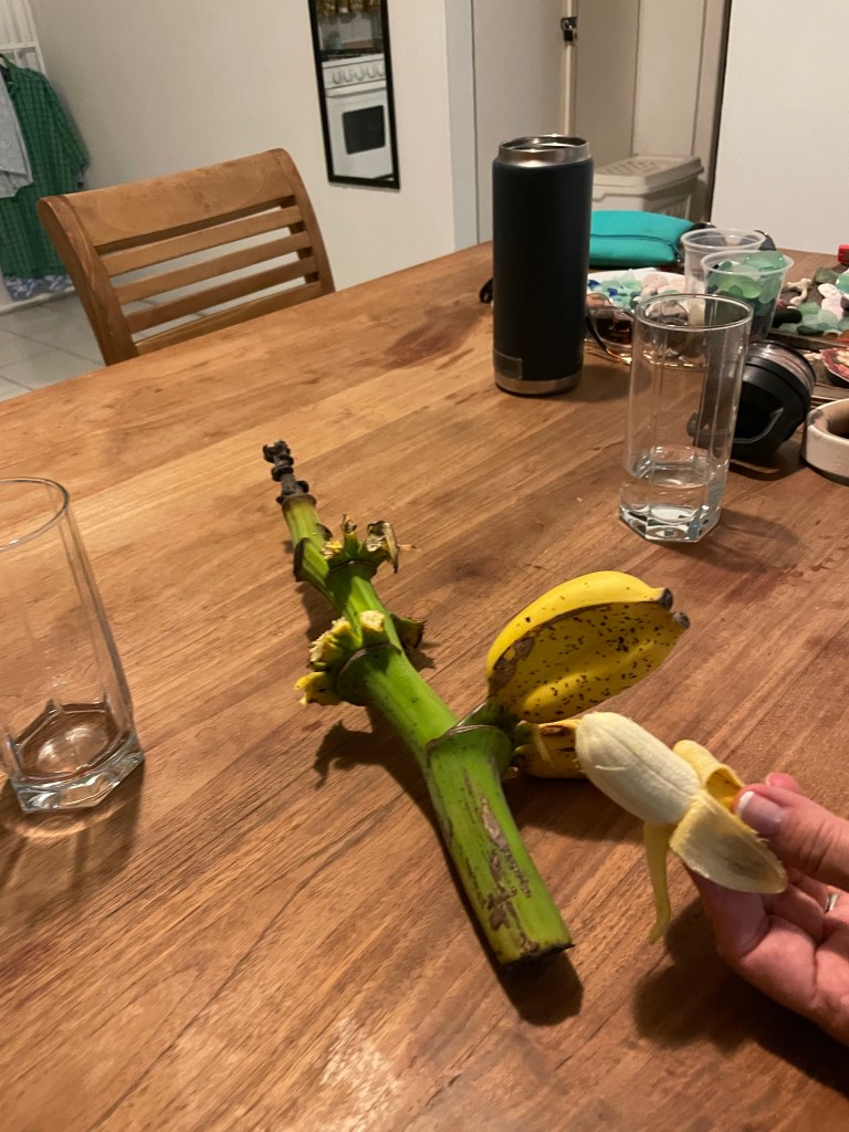 The neighbor harvested his banana plant. He gave us some bananas still on the stalk! What a cool treat. They were a little bit sweet and sour. Unique taste. Nice to have good neighbors.