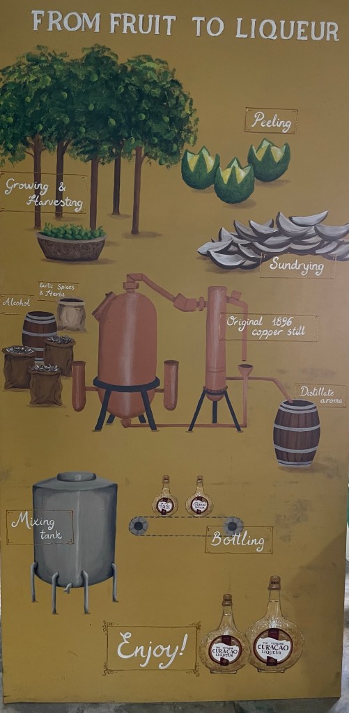 Went through the Curaçao liquor distillery. We took the tour through the buildings. We found out they make many colors of Curaçao liquor. They all taste the same. The colors are changed with flowers which impart no flavor. They do have some they have added flavors to such as chocolate, tamarind and coffee. We also found out you cannot trademark a country name. The owner of the distillery trademarked the unique bottle instead. The bottle is flat on both sides. It has orange peel on the sides of it. The bottle is always sealed with a cork. Turns out much of the Blue Curaçao I have seen I establishments around the world are not the original.
