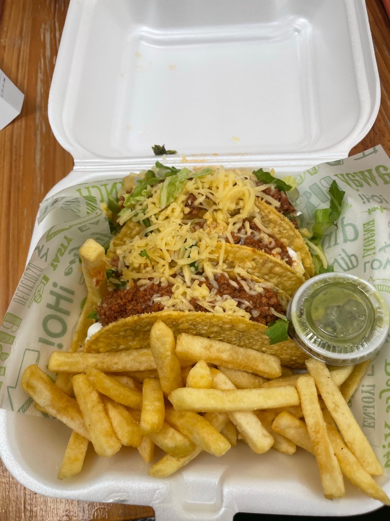 Ordered some tacos today at the Sambil mall food court. Turns out fries come with the tacos! Seem like fries go well with everything. Who woulda thought? I guess every combo meal comes with fries in this country.