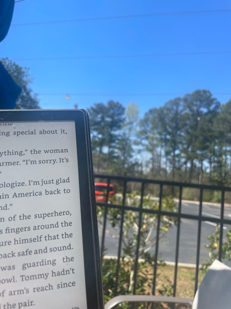 Turns out the weather in Newnan, Georgia is nice this time of year. Good day to sit in the courtyard of the motel and read a book. Around 78 degrees. Life is good.